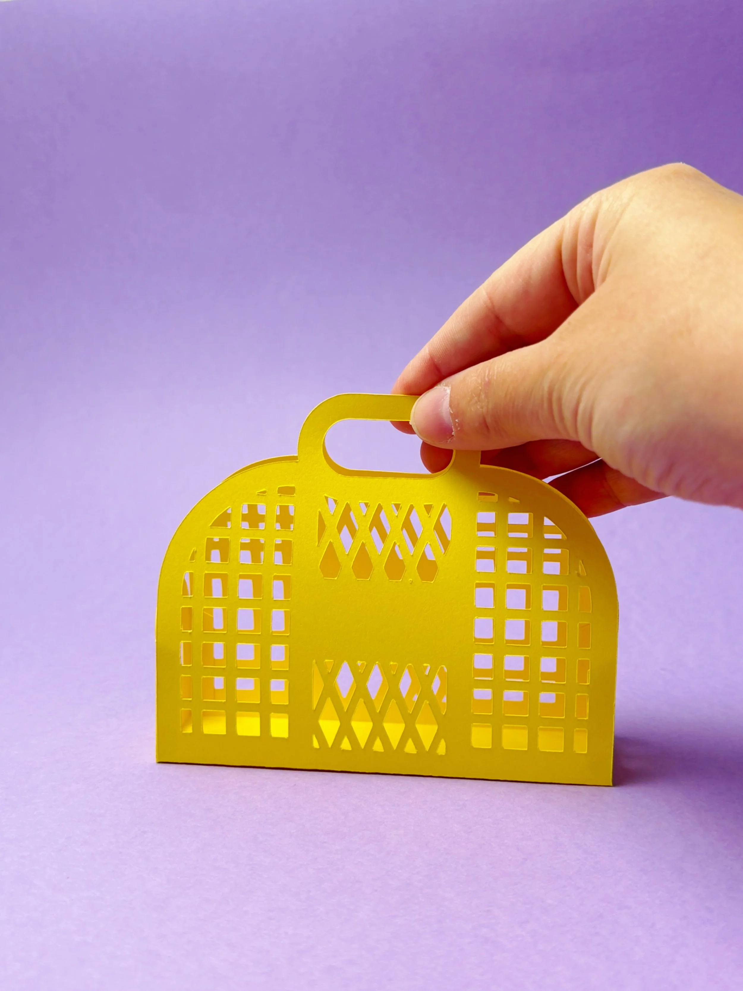 This easy-to-assemble design includes cut lines, score guides, and layered elements to help you create a stylish little tote with lots of personality—perfect for Mother's Day or any thoughtful occasion.