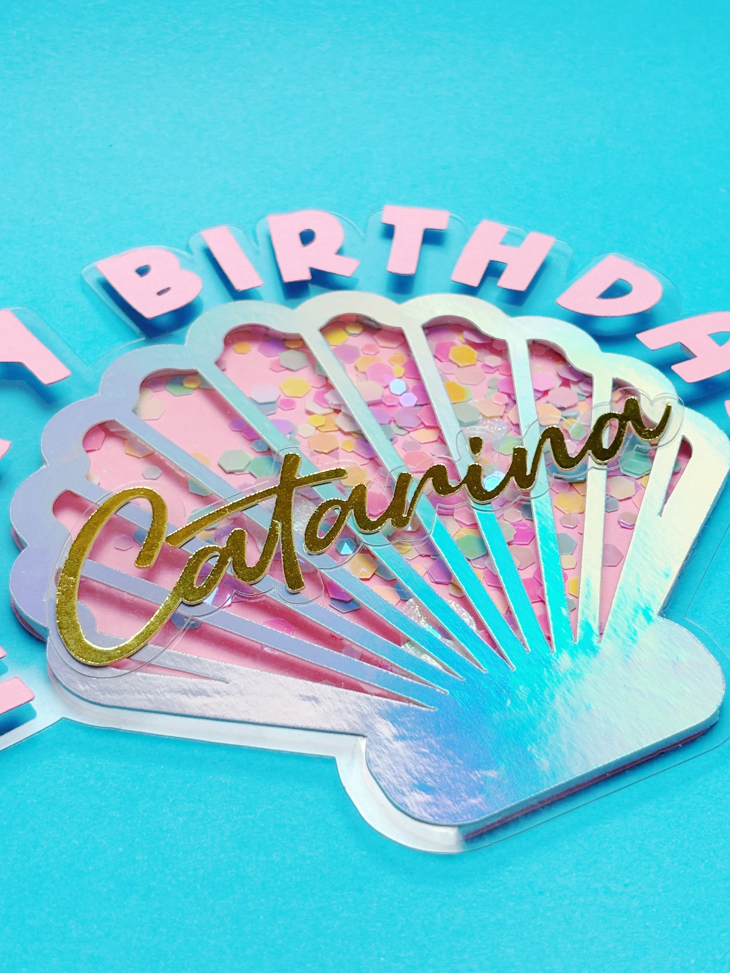 This topper is especially cute for underwater celebrations, combining fun with a bright and cheerful mermaid style.