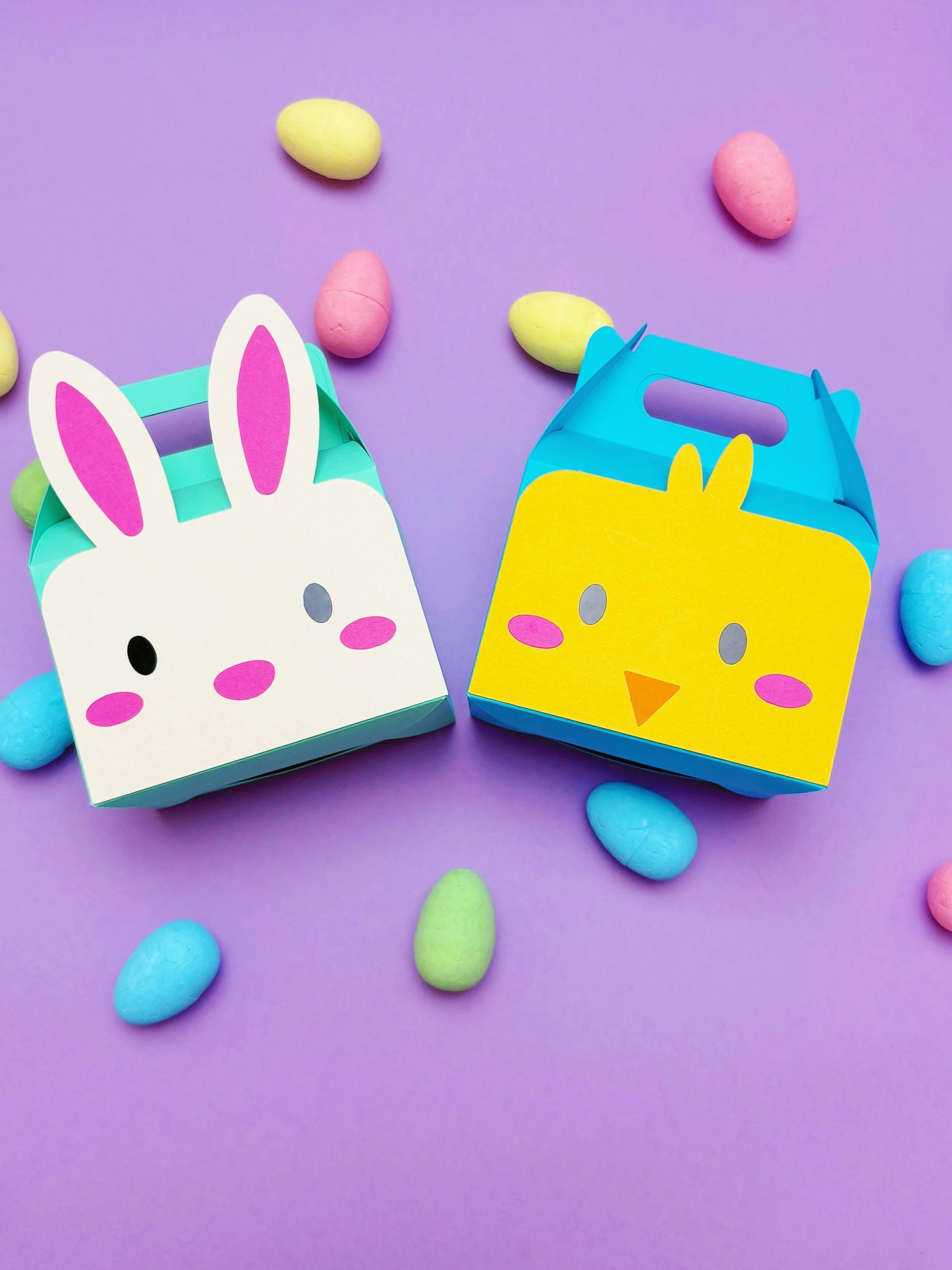 These cute and vibrant bunny and chick-shaped gift boxes are ideal for holding chocolates, small presents, or even an Easter egg surprise! They add a playful touch to any Easter celebration and are a hit with kids and adults alike. This project is also available on Cricut Design Space.