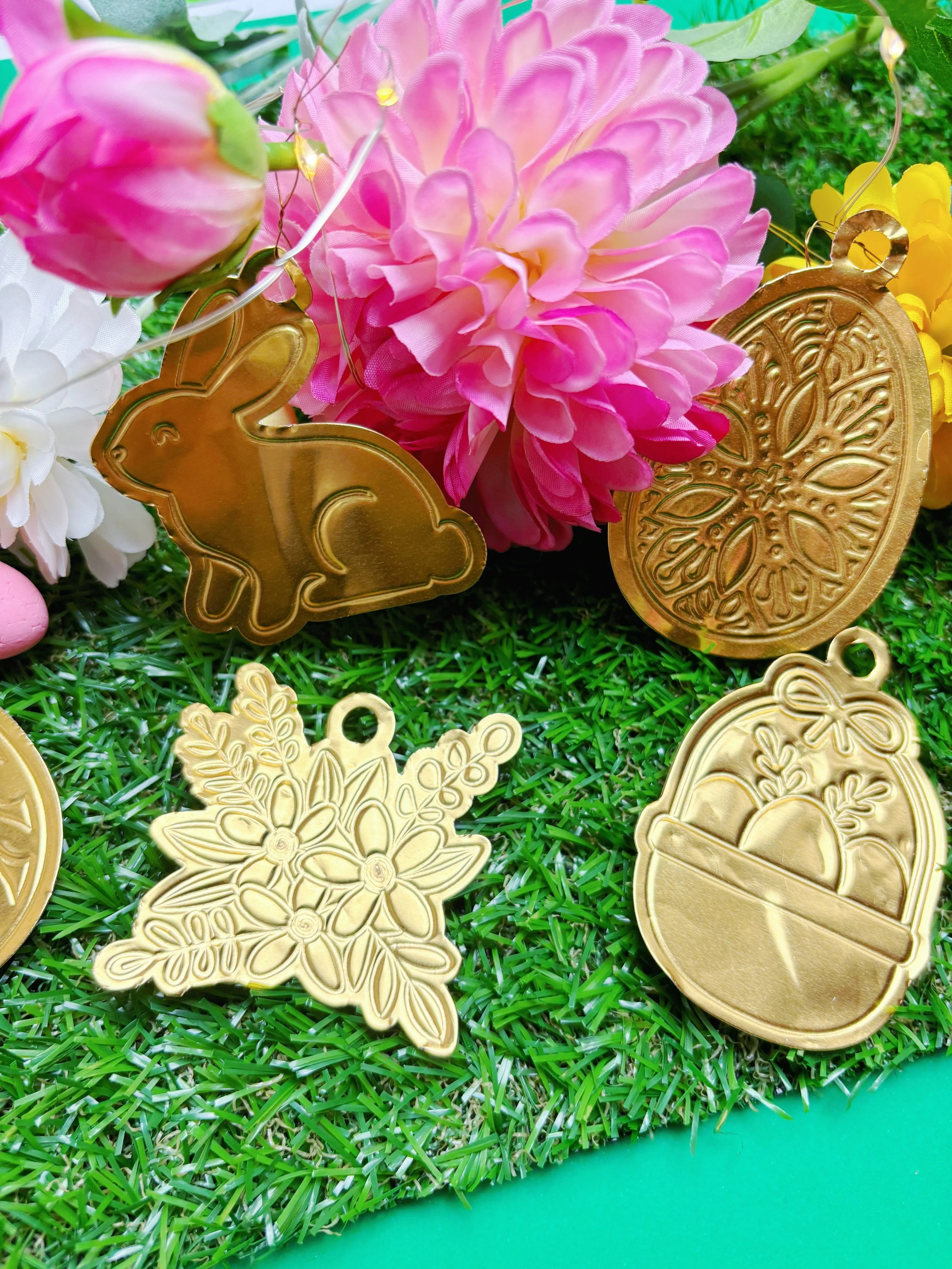 Add a touch of elegance to your Easter decorations with metallic bunny, floral, and egg-shaped ornaments. These eye-catching pieces are great for hanging on an Easter tree or using as unique gift tags. This project is available at Cricut Design Space.