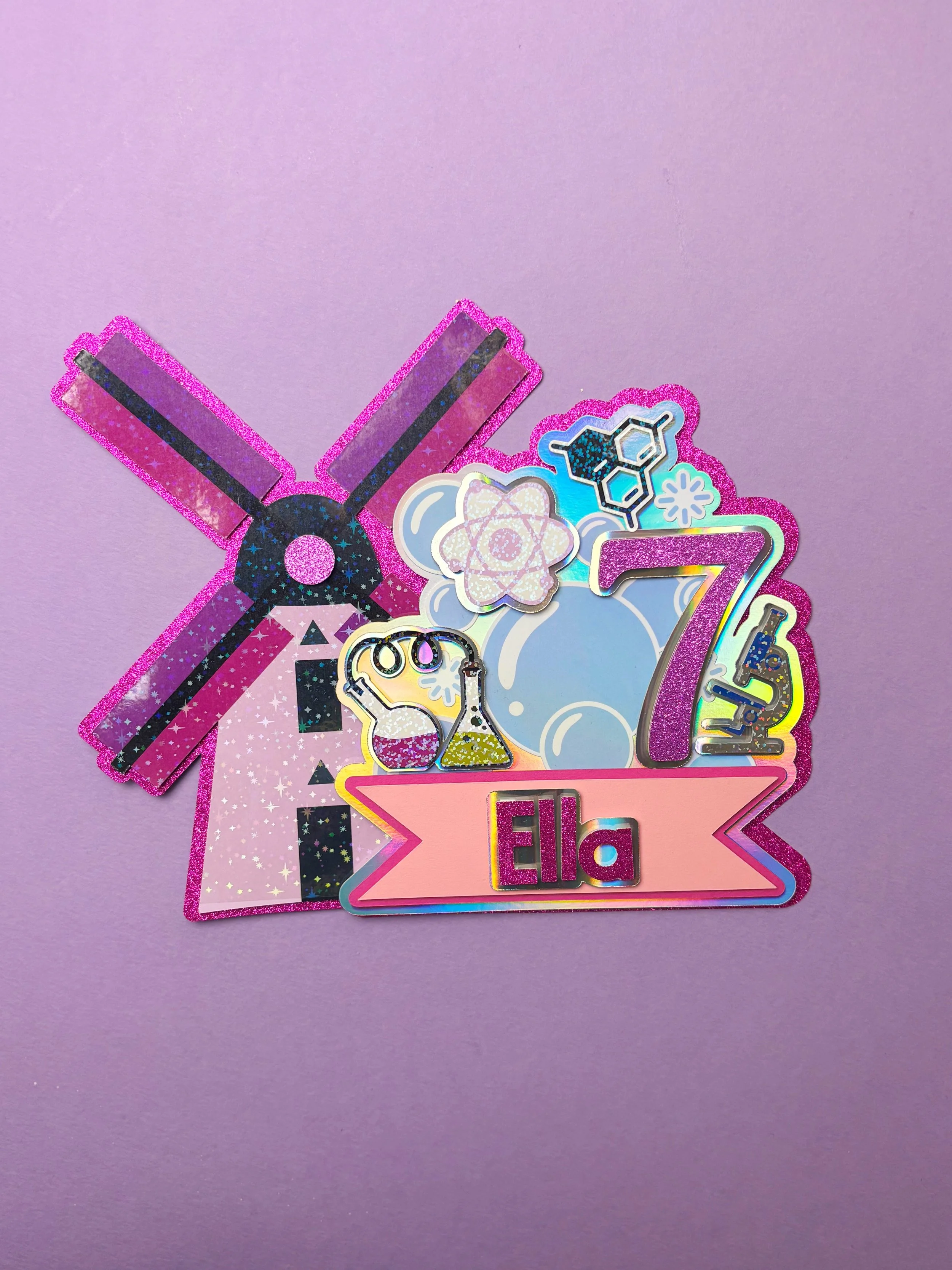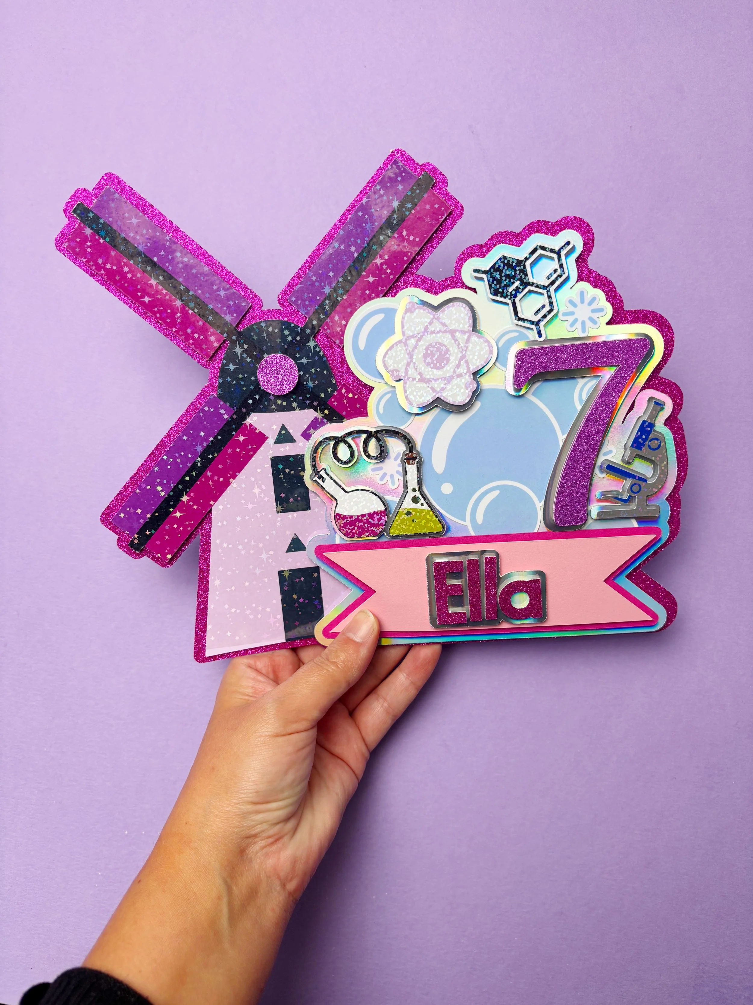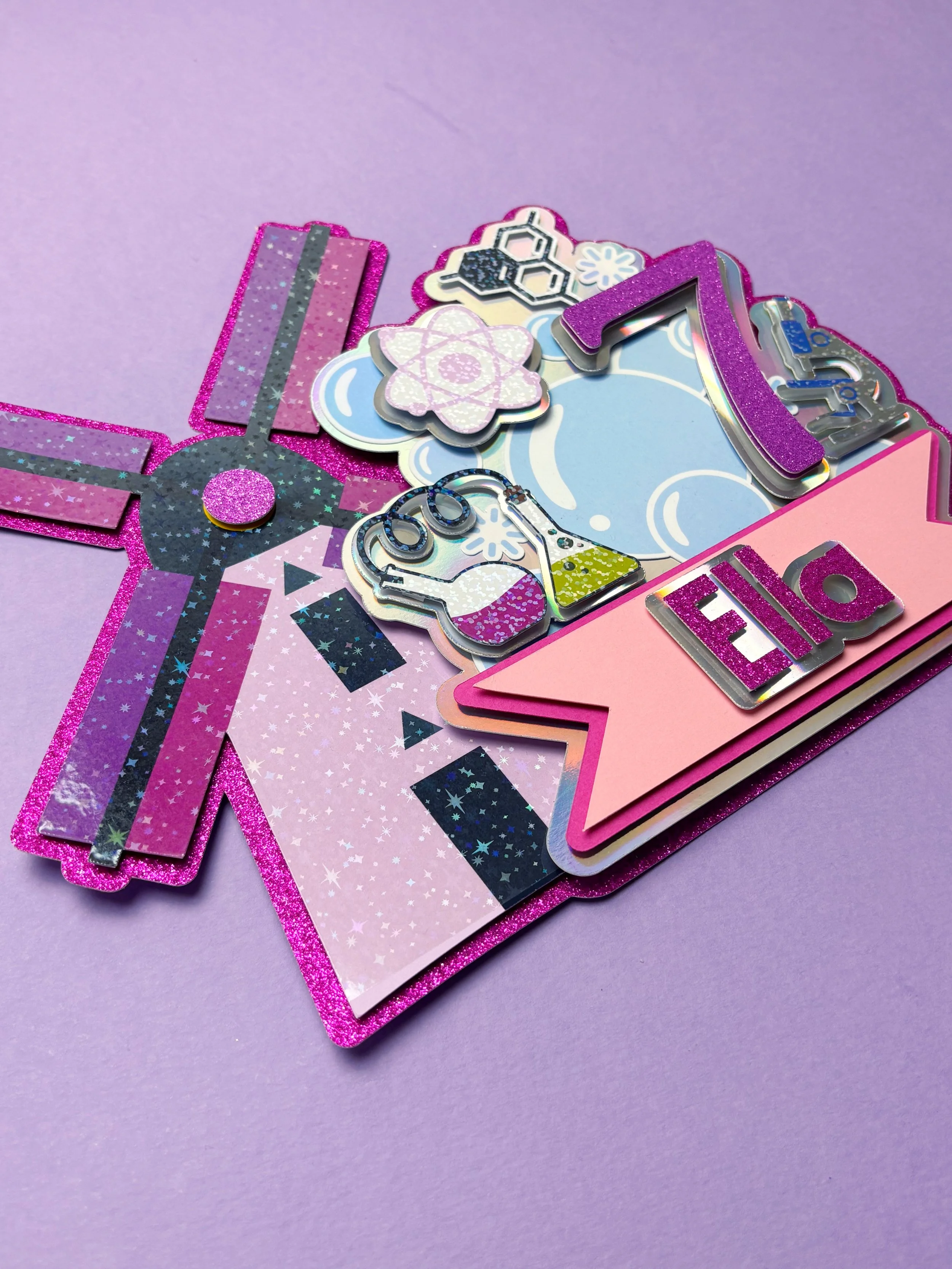 This topper is especially cute for girls who love STEM, combining brains with bold birthday style.