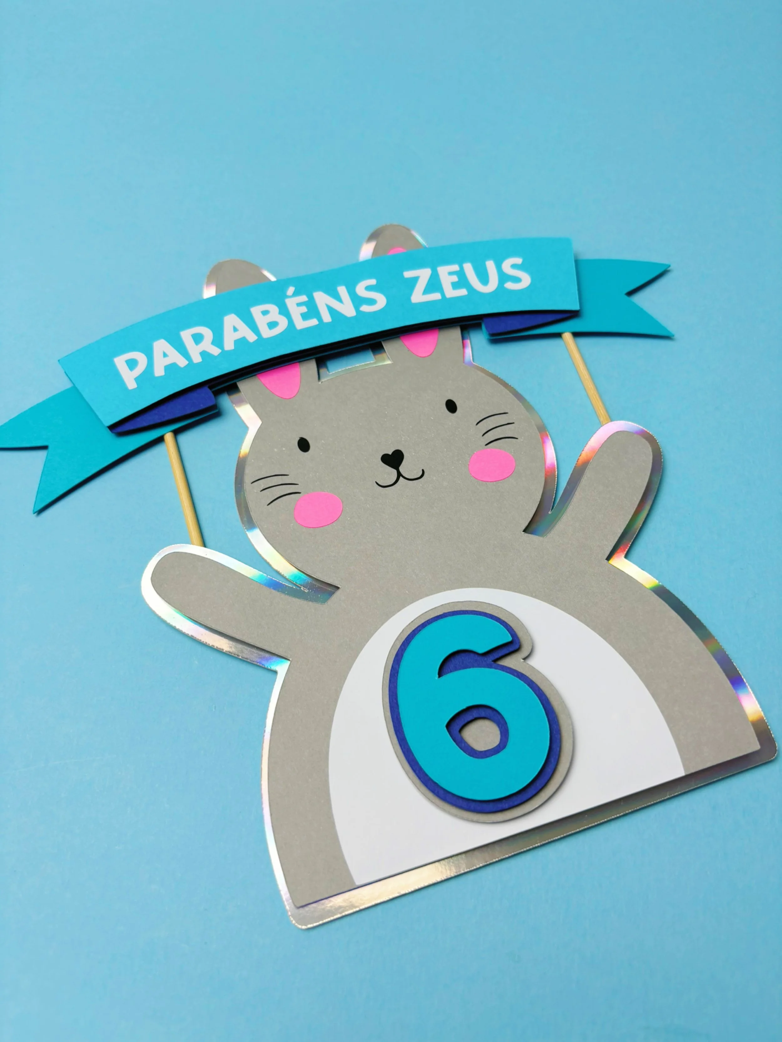 Personalized with the message "ParabΓ©ns Zeus" and featuring the number 6, this design is fully editable, so you can easily adapt it for any occasion using your favourite cutting software!