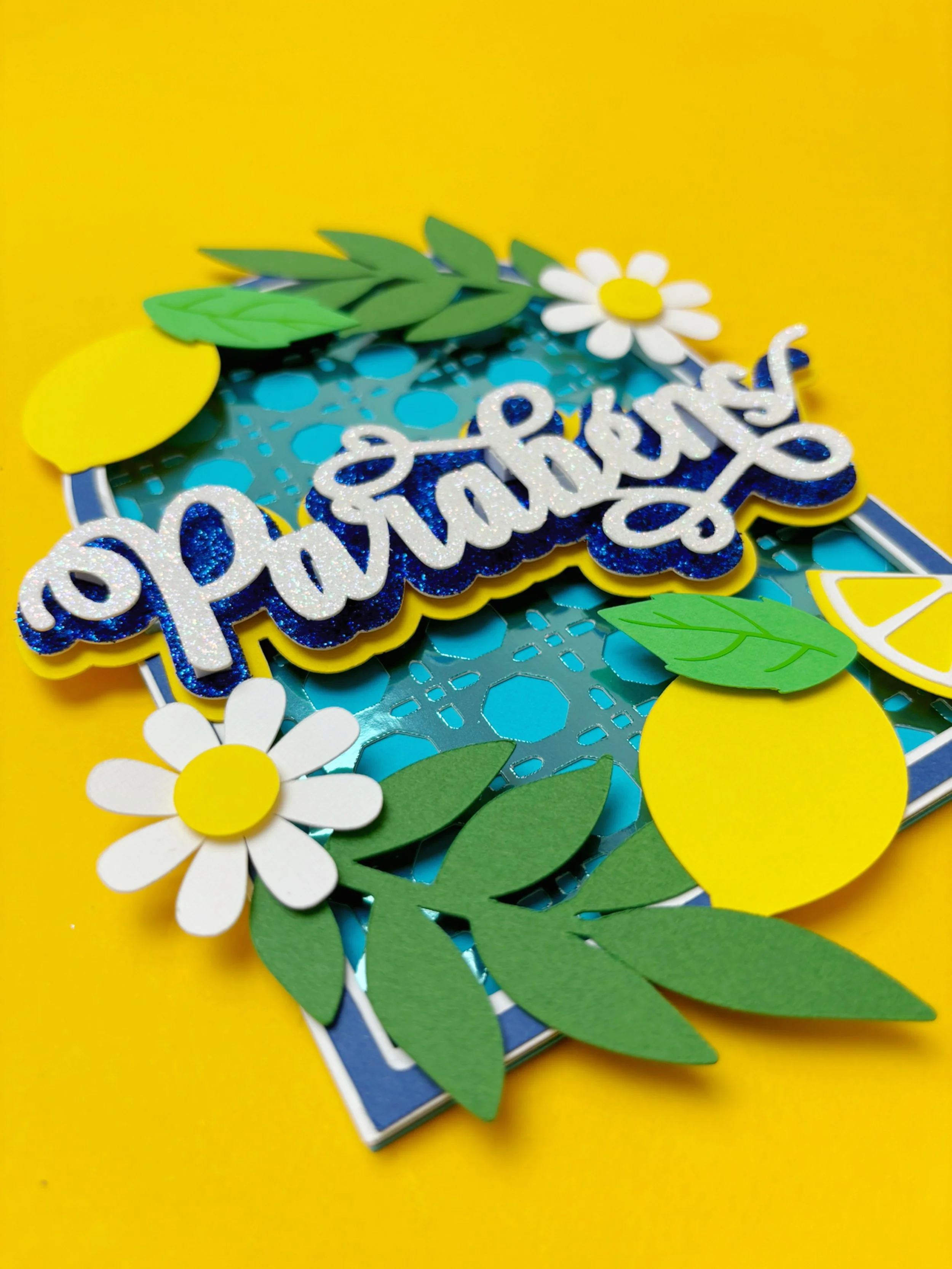 π Sparkly Script β The word ParabΓ©ns shines in layered glitter