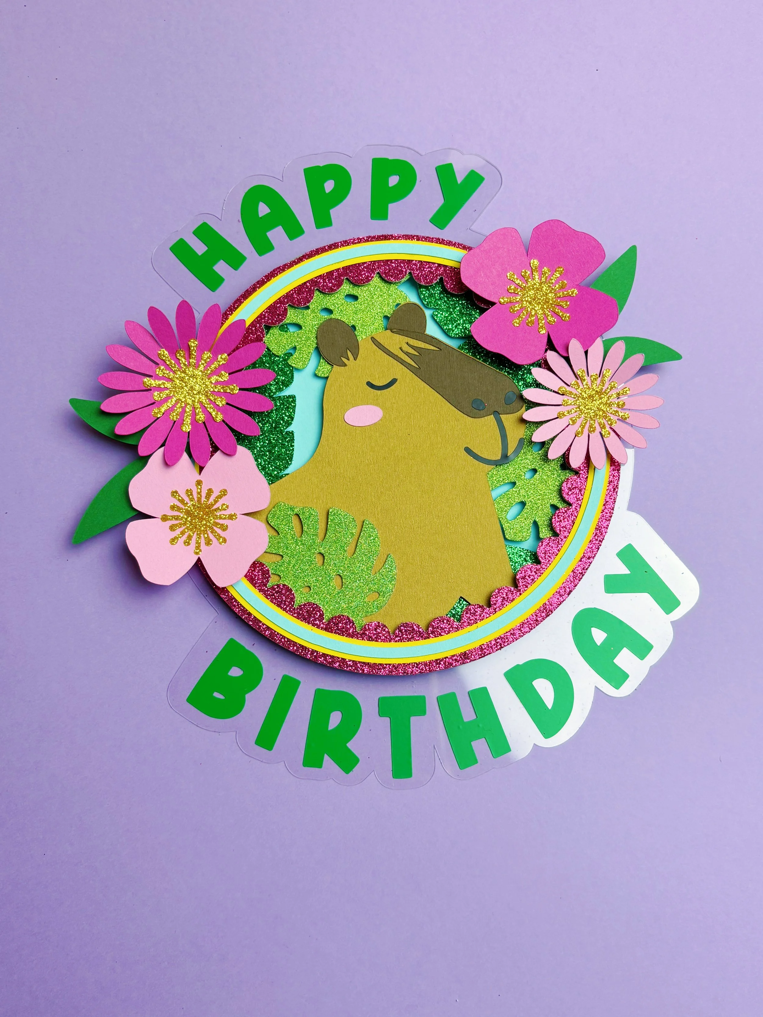 π Capybara Birthday Cake Topper β Tropical Floral DIY Craft