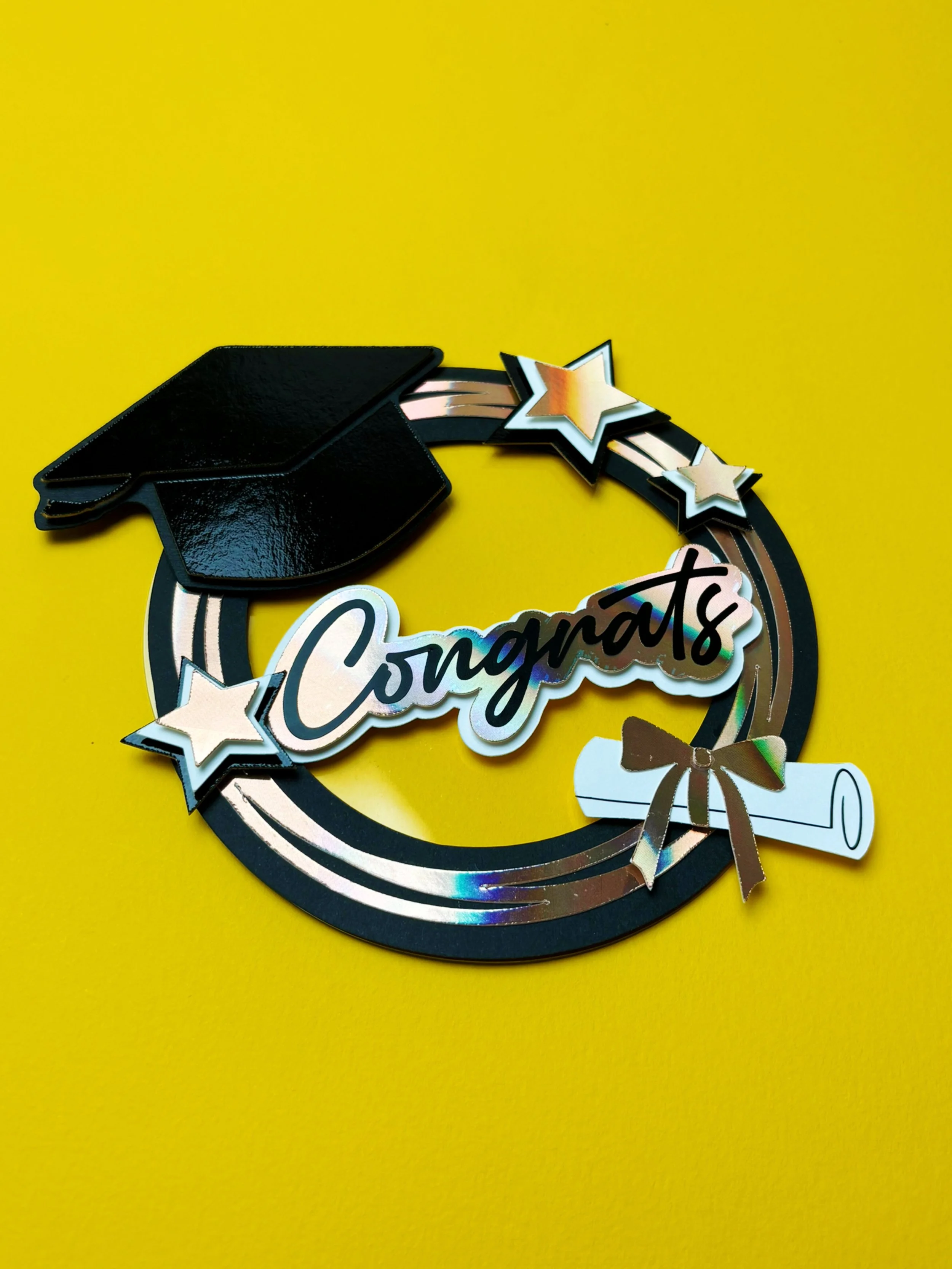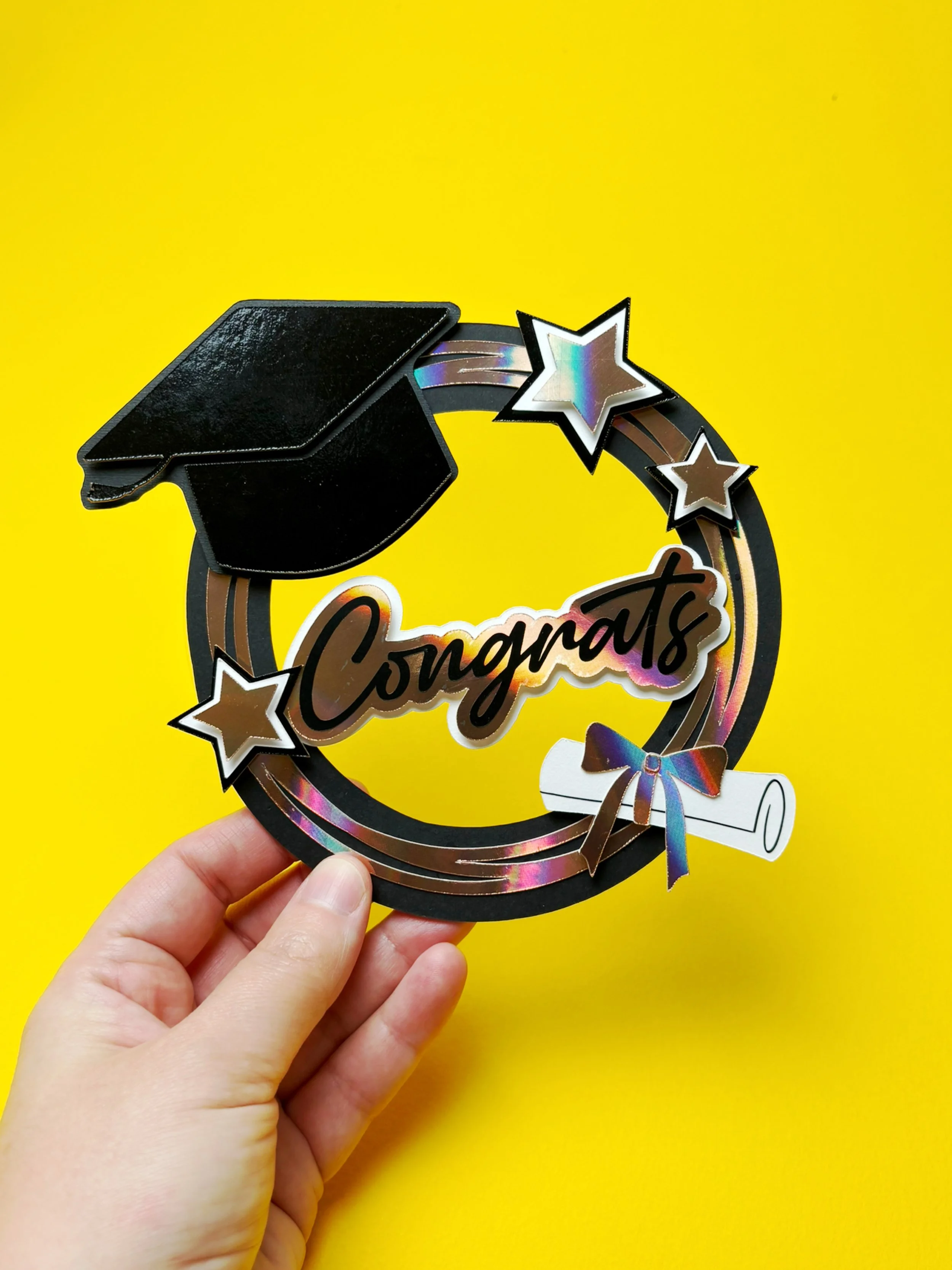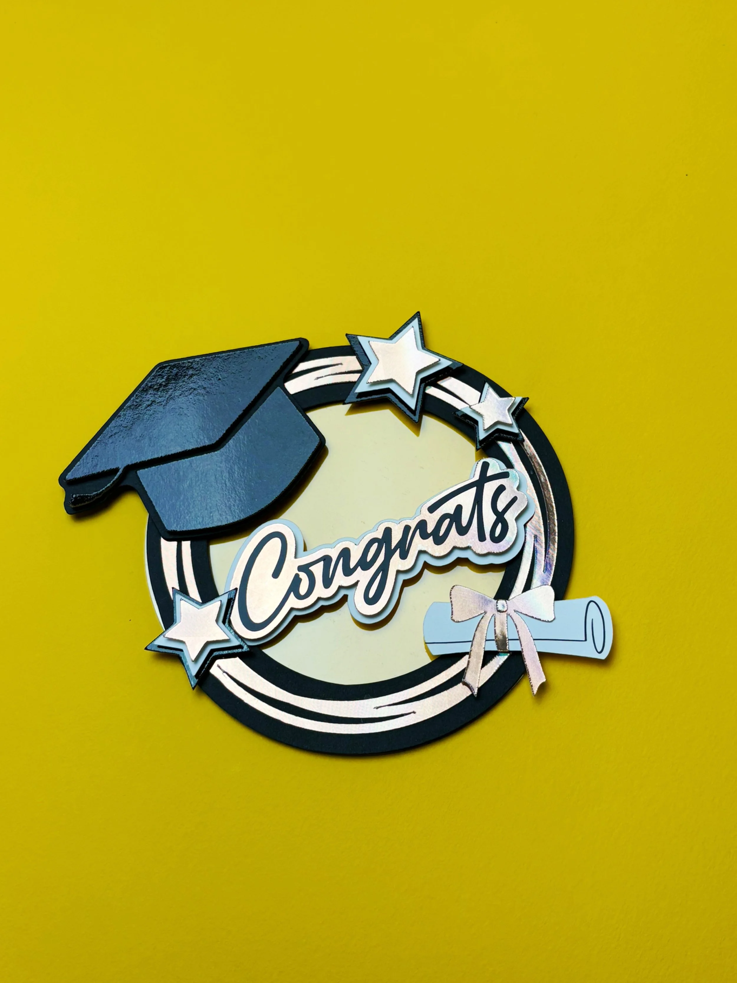 Creating a graduation cake topper is more than just a fun DIY project; it's a heartfelt gesture that shows you care. This beautifully designed cake topper features a classic graduation cap, stars, and a diploma, making it an ideal centerpiece for any graduation cake. It's a perfect blend of creativity and celebration, and with our detailed SVG files, you can achieve a professional finish with ease.