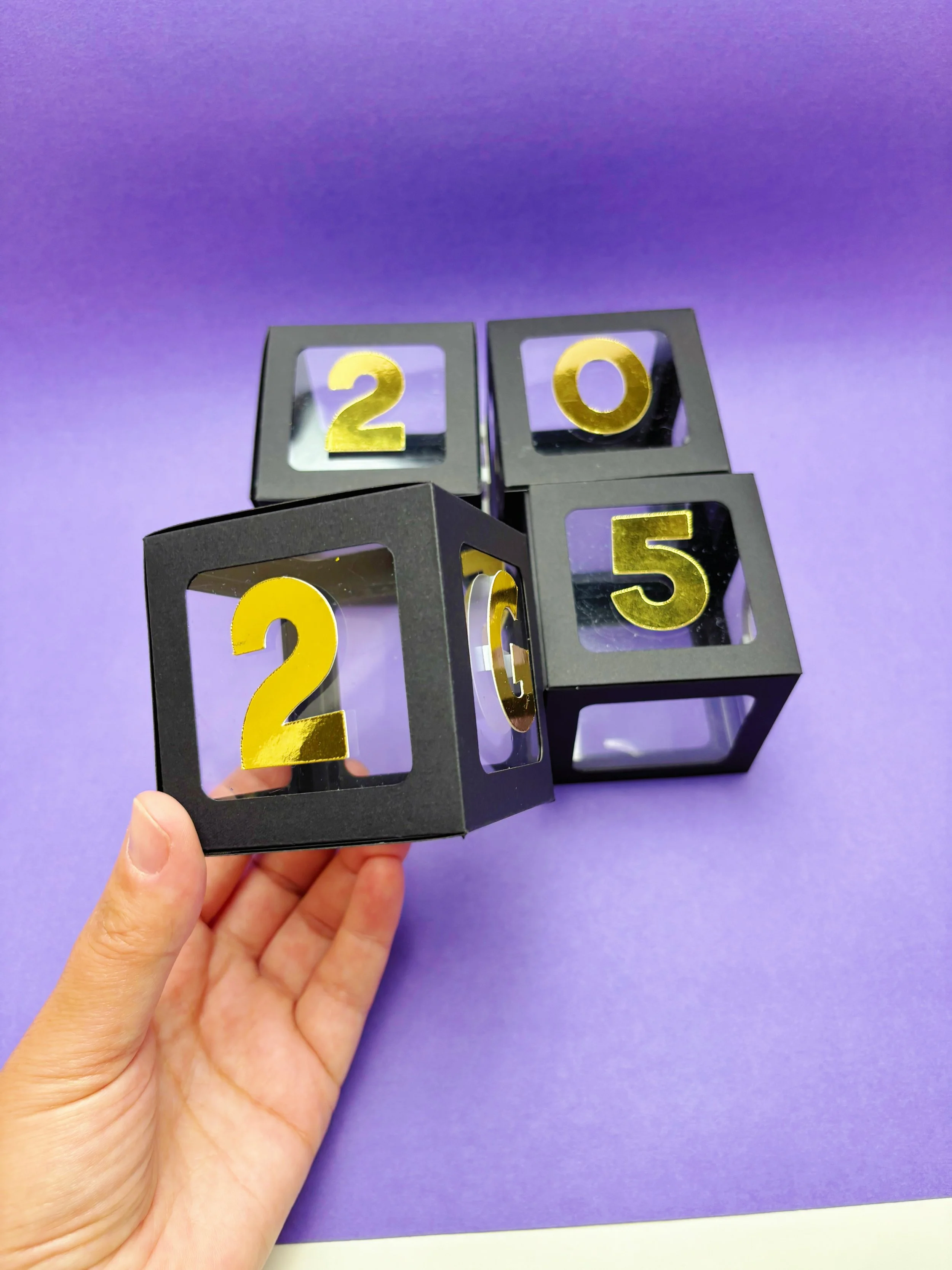 Unique Design: Shaped like cubes with the year '2025' in gold, symbolizing achievement and success.
