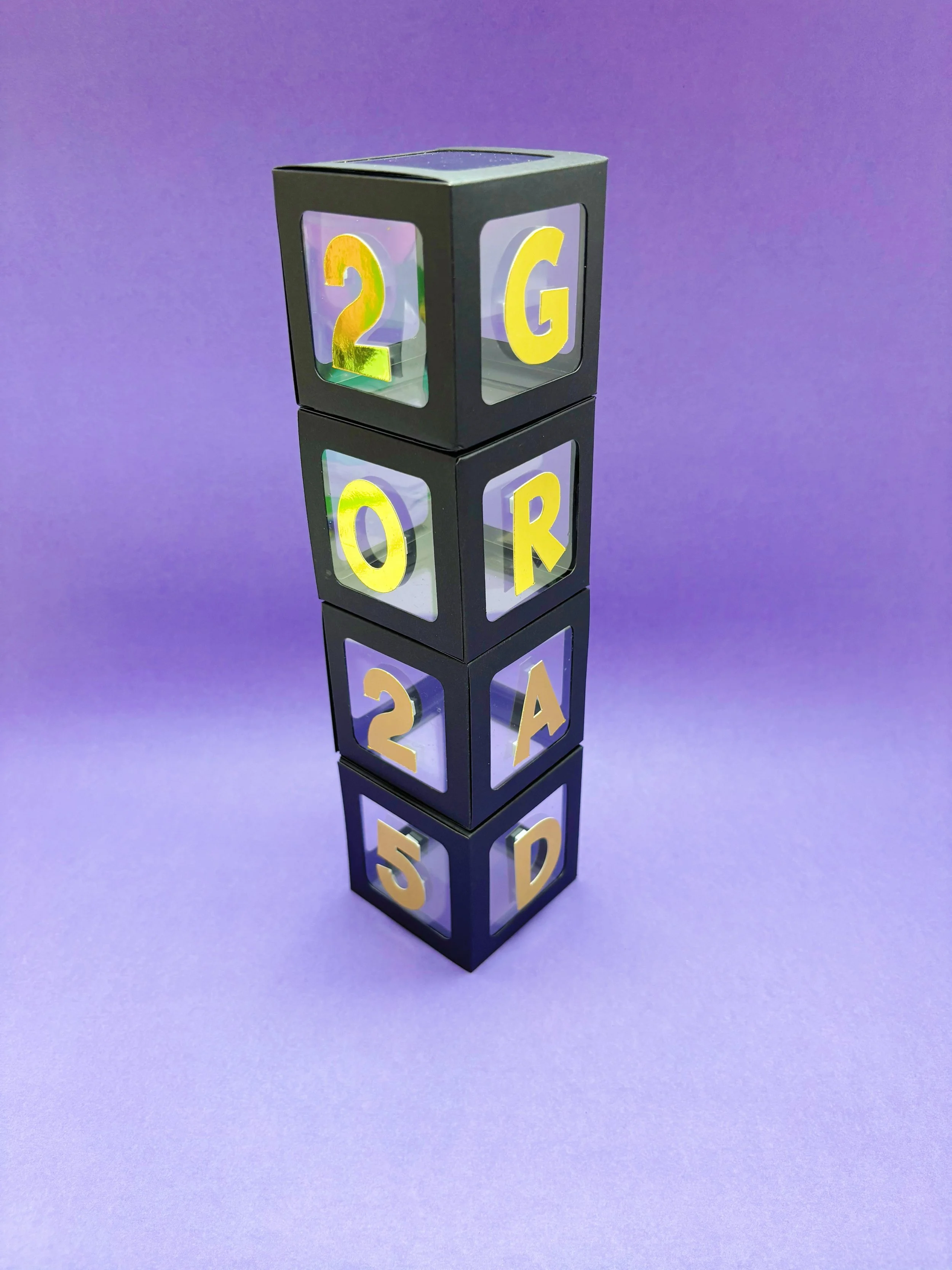 Introducing our stunning Graduation Decoration Cubes, a perfect blend of creativity and celebration! These beautifully designed cubes feature the year '2025' in elegant gold numbers, making them an ideal decoration for any graduation party.